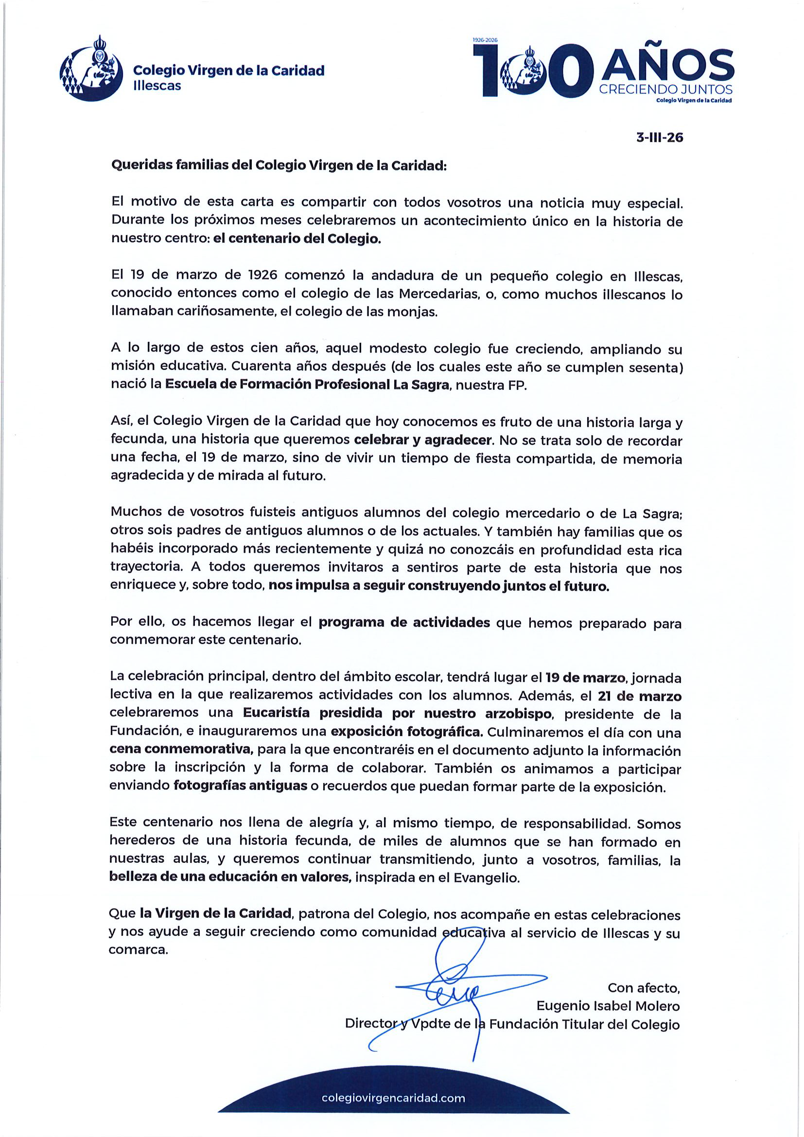 CARTA A LAS FAMILIAS