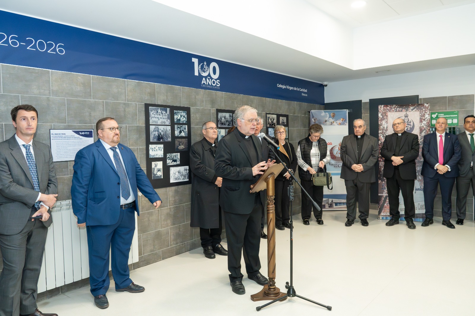 A continuación, se inauguró en el colegio una exposición fotográfica que recorre la historia del centro, con imágenes que van desde sus inicios hasta la actualidad, permitiendo a los asistentes revivir su evolución a lo largo de los años.