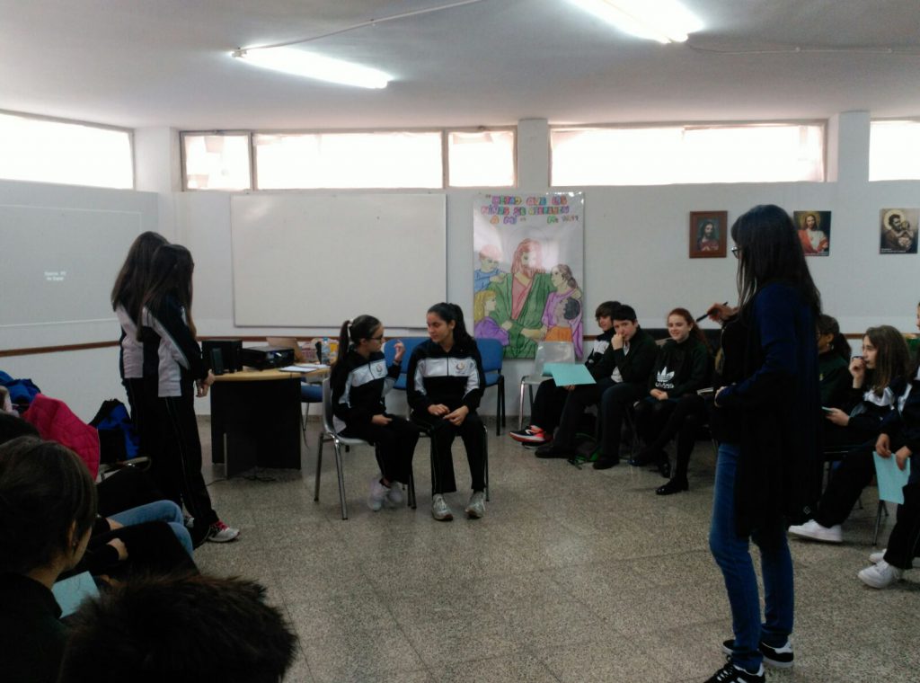 La formación del grupo de Alumnos y profesores tuvo lugar en los salones parroquiales por parte del Equipo de Orientación del centro. En ella se trabajaron aspectos fundamentales para relacionarse y ayudar a sus iguales. Forma de comunicarse, acercamiento, reconocimiento de situaciones…